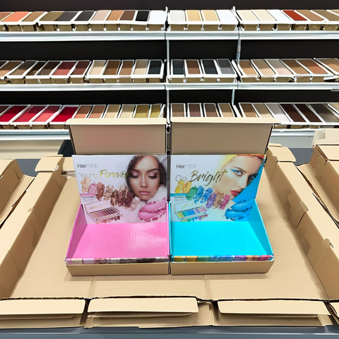 Aangepaste Kleur Cosmetische Papieren Verpakking Dozen Verzending Mailer Gegolfd Display Doos Voor Cosmetica Oogschaduw